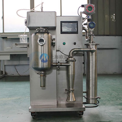 首先在開啟風機,加熱模塊,干燥塔體內(nèi)充入氮氣,要被干燥的液態(tài)物料經(jīng)輸液泵輸送至噴頭處,液態(tài)物料被霧化器霧化成細小液滴,液滴在干燥塔內(nèi)與熱氮氣進行充分的熱交換,物料中的液態(tài)部分被瞬間蒸發(fā),固態(tài)部分形成的粉狀物料沉于塔底,*后經(jīng)過旋風分離器進行氣固分離至物料收集瓶,溶劑經(jīng)過冷凝器回收,氣體循環(huán)利用。